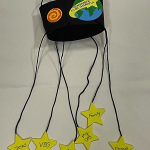 During Tent Time this morning, our campers decorated their craft box. Counselors and staff will fill these boxes with each camper’s crafts daily so on Friday, each camper will take home a treasure box filled with their crafts. This is helpful in a couple ways: 1. It gives time for gloppy and paint filled crafts time to dry before they get loaded into our cars. 2. In the event that a camper misses a particular day at VBS, which is always a sad event, that camper’s craft materials for the day are placed in her/his box so they can be completed at home.