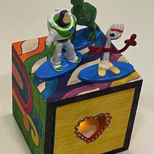During Tent Time this morning, our campers decorated their craft box. Counselors and staff will fill these boxes with each camper’s crafts daily so on Friday, each camper will take home a treasure box filled with their crafts. This is helpful in a couple ways: 1. It gives time for gloppy and paint filled crafts time to dry before they get loaded into our cars. 2. In the event that a camper misses a particular day at VBS, which is always a sad event, that camper’s craft materials for the day are placed in her/his box so they can be completed at home.